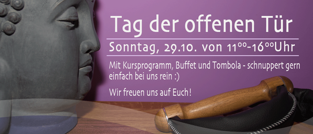 Ihr habt die Möglichkeit, in unser Kursprogramm zu schnuppern, Euch einfach das Studio anzuschauen, an unserer Tombola teilzunehmen und/oder uns alle Fragen zu stellen, die Ihr schon immer mal stellen wolltet 😉